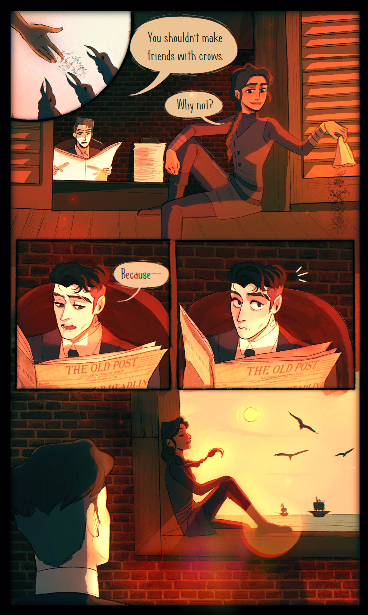 Además este libro no se centra en ellos si no en Kaz, un estafador que adoptó cada una de sus habilidades en la calle, con prueba y error fue perfeccionando su técnica. Además él parece tener un talento nato para hacer atracos y ese carácter agrio y algunas veces hasta cruel, sin olvidar mencionar ese cerebro maquinador que siempre sorprende. Con forma avanza el libro te das cuenta de las razones que lo llevaron a ser como es y lo que lo encaminó a esconder sus sentimientos e incluso de si mismo.